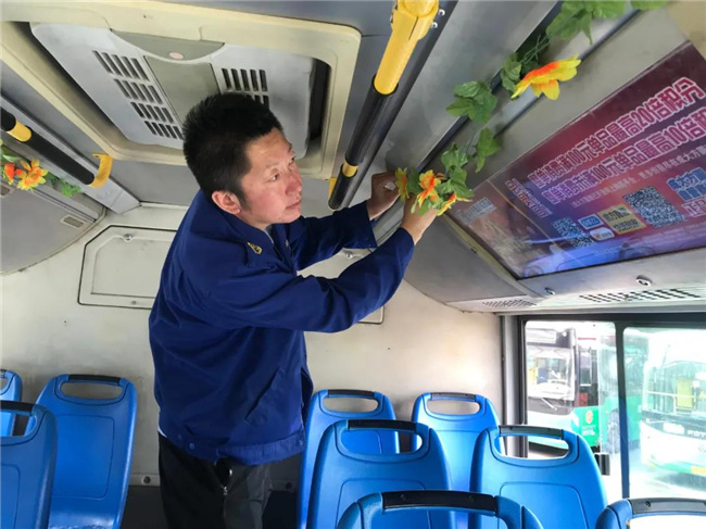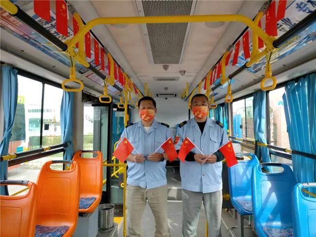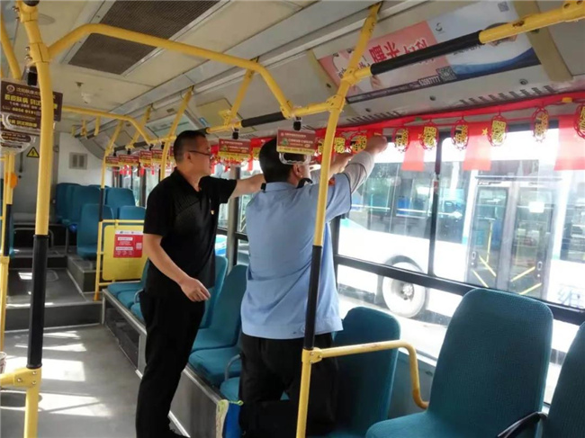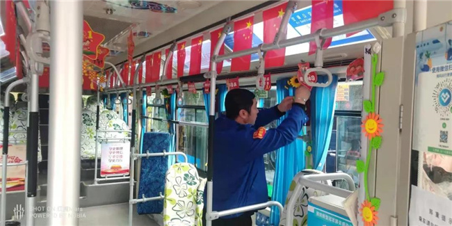 國(guó)慶節(jié)臨近,客運(yùn)集團(tuán)所屬各車隊(duì)積極裝扮公交車廂,為市民乘客營(yíng)造喜慶、祥和的節(jié)日氛圍。
