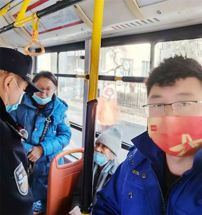 何志強將車輛停穩(wěn),攙扶著老大爺一步一步下車,隨后橫過馬路,登上了對面準備出發(fā)的298路公交車,并安排老大爺坐在離后門最近的位置,詢問老大爺?shù)侥睦锵萝?,一邊提醒老大爺注意聽報站器語音,一邊囑咐當班駕駛員注意幫忙照顧一下這位坐過站的老大爺。