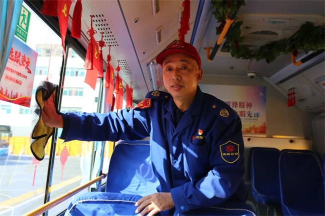 1月31日,除夕早7點多,駕駛員趙江提前來到車隊,像往常一樣打掃衛(wèi)生、給車廂消毒。8點剛過,他駕駛著211路公交從車隊出發(fā)。