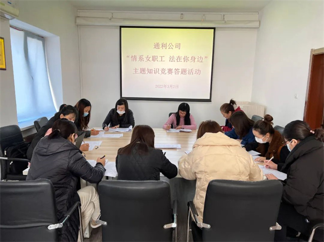 3月2日上午,通利公司開(kāi)展“情系女職工法在你身邊”主題知識(shí)競(jìng)賽答題活動(dòng)。此次答題活動(dòng)得到了女職工的積極響應(yīng),機(jī)關(guān)、票款、調(diào)度中心等部門(mén)40名女職工參加,取得了良好效果。