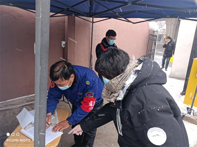 公司院內有4家經(jīng)營單位,每天有200余輛同行單位的加氣人員需進出公司院內進行加氣,為保證防控安全到位,公司及時排兵布陣,在20名機關干部被居家隔離的情況下,克服困難,成立機關志愿者防疫隊,公司領導黨員干部帶頭值崗,登記地點從辦公樓入口前移至公司場院入口,為進入場區(qū)人員登記、測溫、車輛消殺。寒風陣陣,志愿者們的身影一直在公司場區(qū)門口堅守著。
