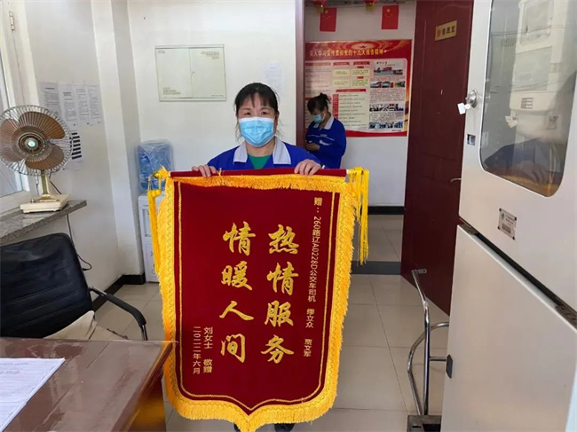 第二天,乘客劉女士專(zhuān)程來(lái)到260車(chē)隊(duì),將一面寫(xiě)有“熱情服務(wù) 情暖人間”字樣的錦旗交到了車(chē)隊(duì)并說(shuō)道:“非常感謝車(chē)隊(duì)培養(yǎng)了這么優(yōu)秀的駕駛員,因節(jié)日期間急著補(bǔ)一批貨,又趕上家里缺人手,我才一個(gè)人前往五愛(ài)市場(chǎng)。本來(lái)還擔(dān)心駕駛員不會(huì)讓我上車(chē),或者嫌棄我耽誤時(shí)間,沒(méi)想到遇到了兩位熱心腸的駕駛員,他們耐心細(xì)致的幫助我解決了困難,讓我倍感溫暖。為表感激之情,我特意趕制了一面錦旗了表寸心,謝謝你們!”