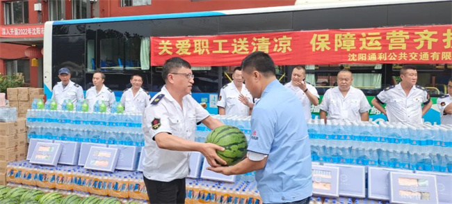 8月3日,通利公司工會開展了“關愛職工送清涼 保障運營齊護航”活動。公司工會為一線職工贈送了浴巾、毛巾、洗手液、礦泉水、飲料、西瓜,并將集團工會的慰問物品一同送到職工手里。大家紛紛表示將繼續(xù)努力,為公司安全運營筑起一道堅實防線,為乘客安全出行,創(chuàng)建沈城文明公交貢獻自己的一份力量。