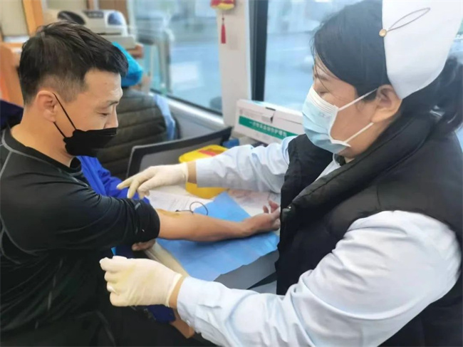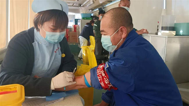 活動中,參加獻(xiàn)血的職工認(rèn)真填寫獻(xiàn)血登記表,積極配合醫(yī)務(wù)人員進(jìn)行血壓測量、抽血化驗等程序,血液檢驗合格后正式進(jìn)入采血步驟。