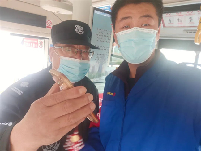 10月20日早8點左右,121路駕駛員馮志松和隨車安保員正在線路運營。當(dāng)乘客通過安檢全部上車坐穩(wěn)后,車輛正常駛離車站,隨車安保員環(huán)顧車廂觀察乘客口罩佩戴等情況時,在座位上發(fā)現(xiàn)一部乘客掉落的手機。