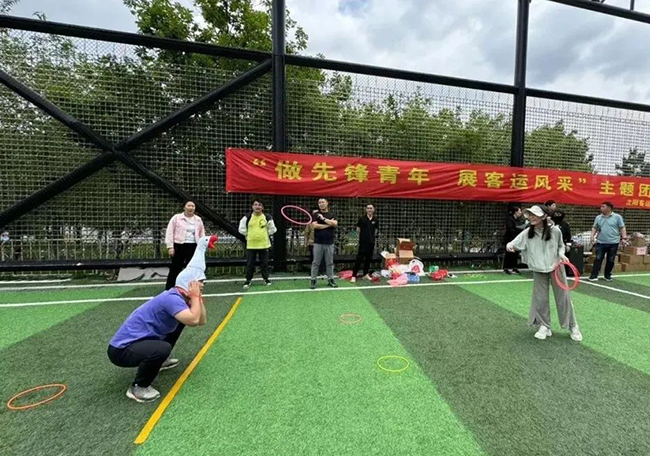 參觀結(jié)束后,大家來到莫子山公園炫彩青年運動場,圍坐在活動場地,分享彼此的感受和收獲,隨后在工作人員的引導(dǎo)下開始了緊張而刺激的團(tuán)隊體育競技游戲。