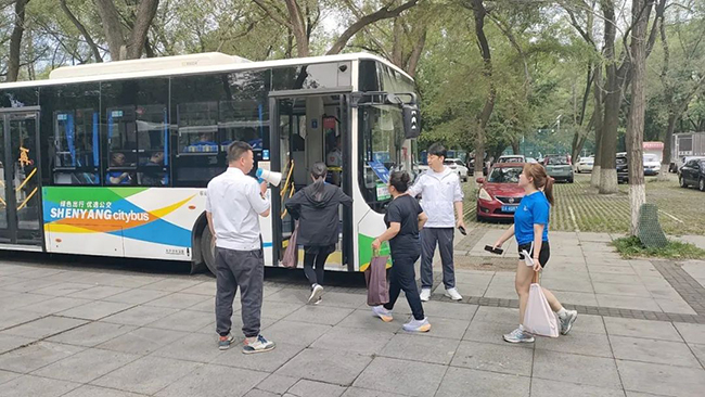 6月6日晚,2026年世界杯亞洲區(qū)預選賽中國男足對泰國隊的比賽在沈陽奧體中心舉行,為給廣大乘客提供便捷的出行服務,做好賽事交通運輸保障工作,沈蘇公司調(diào)配了20輛公交車,??吭诘罔F站及奧體中心附近的停車場,為乘坐地鐵的乘客提供免費公交接駁服務。