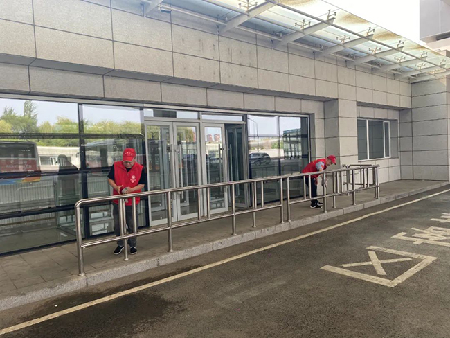 108.100路車(chē)隊(duì)組成的志愿服務(wù)隊(duì)來(lái)到沈陽(yáng)南站公交樞紐站,認(rèn)真擦拭圍欄及站牌,清掃地面,使樞紐站整潔有序。