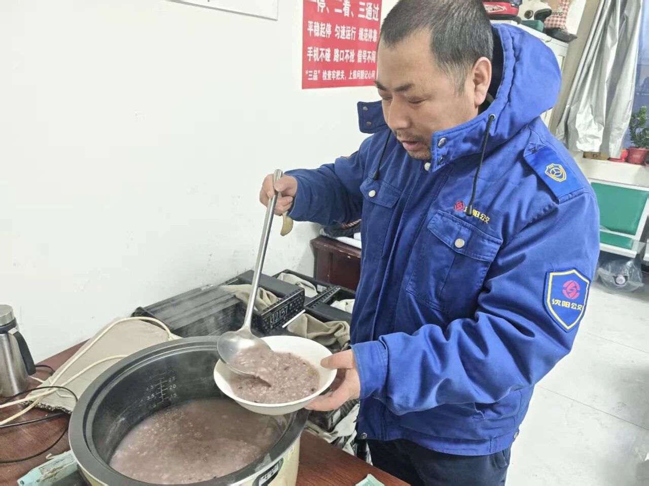 接過(guò)粥碗,熱氣順著手心蔓延,駕駛員們笑意融融。一碗粥下肚,不僅驅(qū)散了凌晨的冷意,更熨帖了身心。車隊(duì)管理人員也借此機(jī)會(huì),細(xì)細(xì)叮囑:冬日行車,注意保暖,穩(wěn)駕慢行,務(wù)必把安全放在首位,以飽滿的精神迎接每一位乘客。