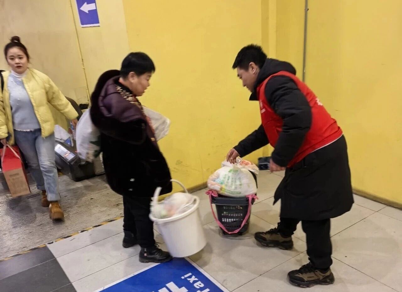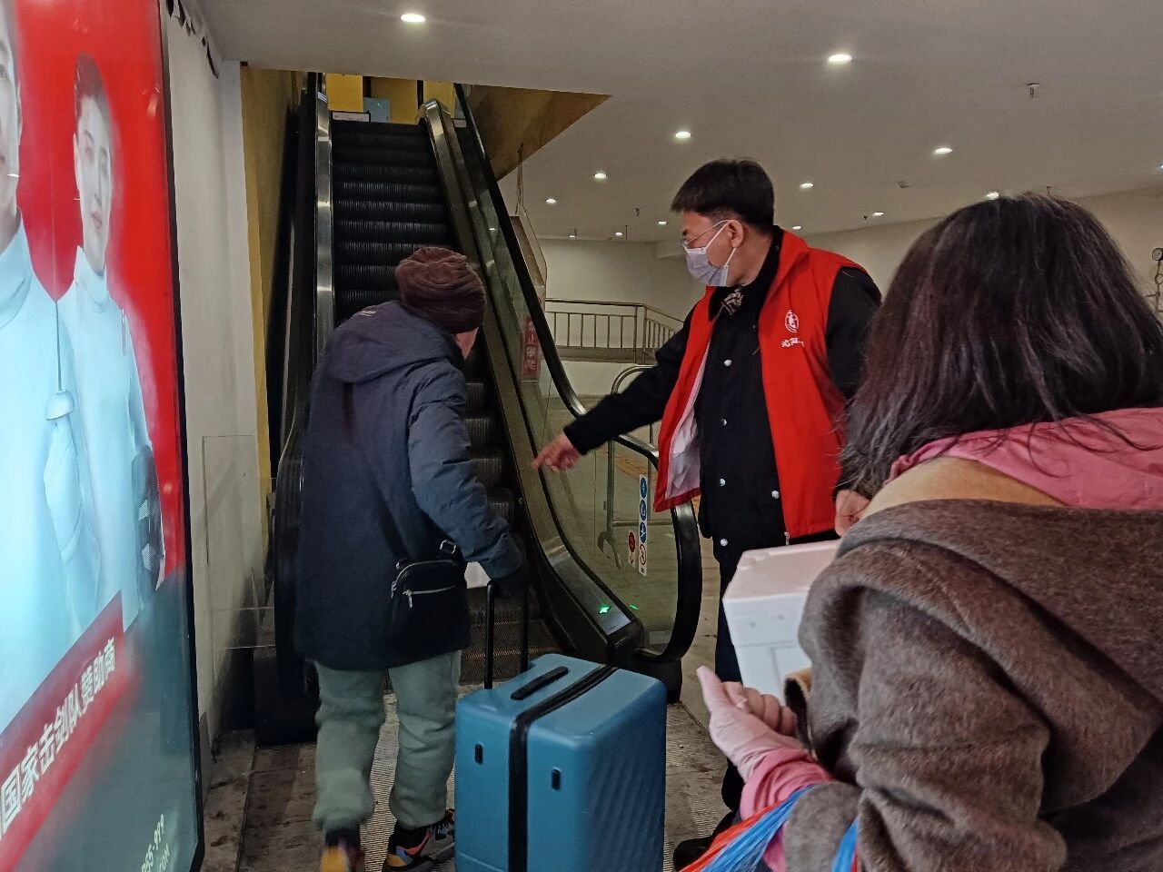 看到行動不便的老人,志愿者們會上前攙扶一把;遇到帶著孩子的母親,他們會幫忙提一提嬰兒車。那一抹抹流動的紅色,像是一根根針線,將秩序與溫情密密地縫進(jìn)了繁忙的春運(yùn)畫卷中。
