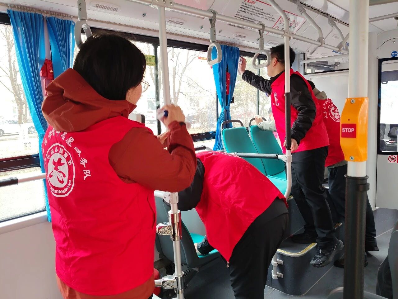 隨后,志愿者們又來到公交場站,對229路、253路公交車輛展開清潔。大家手持清潔工具,分工擦拭車身、清掃車廂、整理座椅扶手,不放過任何一個角落。經(jīng)過共同努力,一輛輛公交車窗明幾凈,為市民提供了整潔、舒適的乘車環(huán)境。