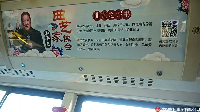為進(jìn)一步豐富藝術(shù)惠民的內(nèi)容,滿足廣大乘客日益多樣化的藝術(shù)需求,擴(kuò)大“藝術(shù)公交”的影響力,惠及更多的乘客,和平區(qū)文聯(lián)、沈陽(yáng)客運(yùn)集團(tuán)有限公司、沈陽(yáng)藝海星辰科技有限公司又聯(lián)合推出了“文學(xué)專號(hào)”、“曲藝專號(hào)”、“國(guó)學(xué)專號(hào)”三輛藝術(shù)公交車。藝術(shù)公交車已成為聯(lián)系和溝通藝術(shù)家與乘客的紐帶和橋梁,互動(dòng)雙贏,既激發(fā)了藝術(shù)家的創(chuàng)作靈感和熱情,又提升了乘客的藝術(shù)品味和鑒賞力。