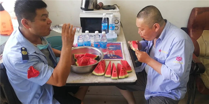 康利公司各車隊為駕駛員準(zhǔn)備了豐盛的午餐——餃子,為了給駕駛員防暑降溫、緩解疲勞,準(zhǔn)備了冰鎮(zhèn)西瓜和冰鎮(zhèn)礦泉水。同時也叮囑駕駛員要注意休息,保證身心健康。