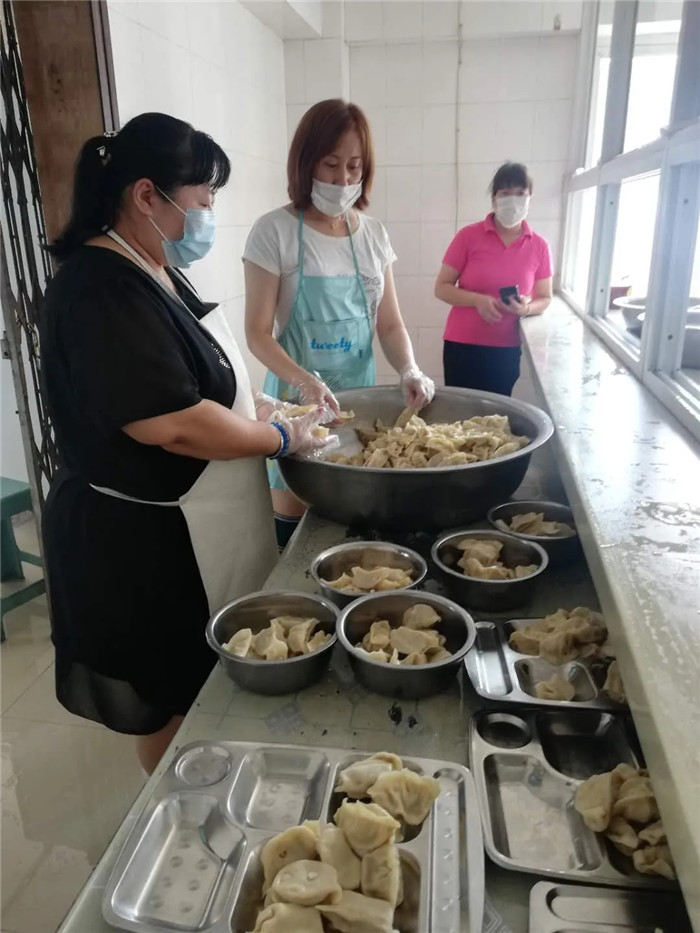 和面、洗菜、剁餡、和餡,各線路食堂一大早便開始為中午的餃子午餐忙活了起來,很多駕駛員利用站停休息時間也紛紛參與其中。大家邊聊天邊干活,在歡樂、祥和、輕松的氛圍中,一盤盤香氣撲鼻的餃子端上了餐桌,搭配上綠豆水、西瓜、礦泉水等防暑降溫品,營造了“黃河公司一家親”的和諧氛圍。