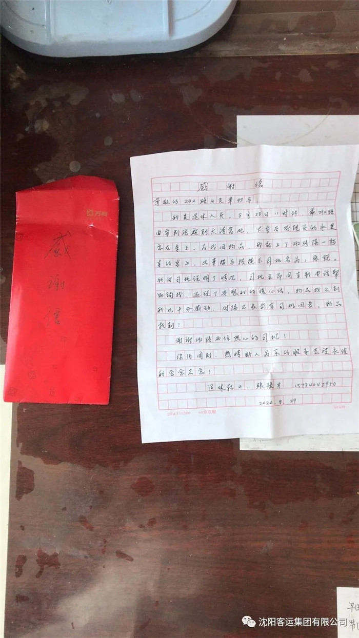 深受感動的老人第二天一大早就帶著一封感謝信來到了292車隊,對駕駛員張銳在工作中的熱情和責任心表示贊揚。