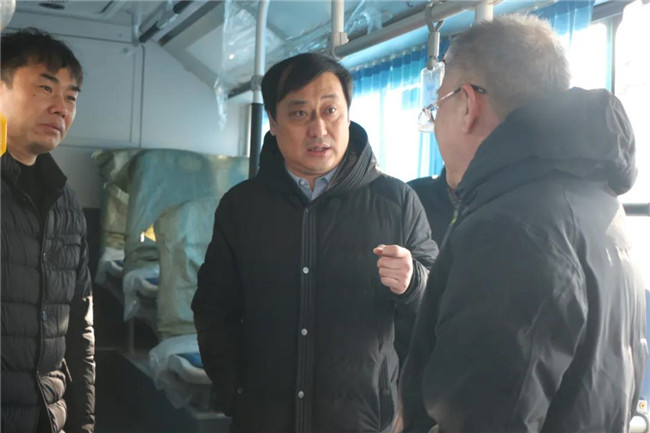 12月4日,集團公司新購置的100臺華晨牌純電動公交車陸續(xù)運抵黃河公司場站院內(nèi)。華晨專用車(大連)有限公司董事長王東明等一行十余人,集團公司領(lǐng)導(dǎo)班子成員,黃河公司經(jīng)理及相關(guān)部門負責(zé)人共同登上新車,切身感受車輛性能及特點,并進行現(xiàn)場指導(dǎo)工作。