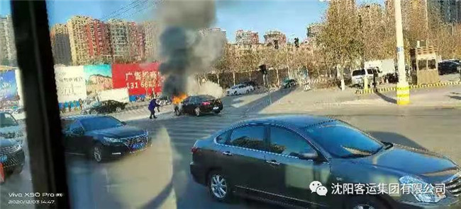 12月3日下午14:45分左右,渾河雷鋒號(hào)駕駛員張曉鷗在行駛至南京南街中海社區(qū)附近時(shí),發(fā)現(xiàn)左前方不遠(yuǎn)處有一輛私家車起火,火勢(shì)蔓延迅速,車內(nèi)不斷冒出滾滾濃煙。駕駛員張曉鷗第一時(shí)間將車輛??恐涟踩貛В诖_保車上乘客安全的情況下,迅速拎起滅火器,沖下公交車一路小跑至私家車旁,對(duì)準(zhǔn)車輛著火部位進(jìn)行噴射。