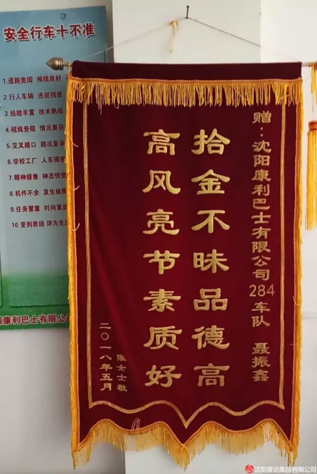 無獨(dú)有偶,還是284路車隊(duì)。5月10日,駕駛員聶振鑫在檢查車輛衛(wèi)生時(shí),發(fā)現(xiàn)一部筆記本電腦被遺落車內(nèi),由于還要繼續(xù)行車,來不及尋找失主,便把電腦交給了車隊(duì)工作人員。失主發(fā)現(xiàn)自己電腦丟失后,抱著試試看的態(tài)度來到284路車隊(duì),令她沒想到的是,電腦被細(xì)心的駕駛員撿到了。經(jīng)過工作人員核實(shí),電腦的確是這位失主所有。失主對駕駛員拾金不昧的行為表示感謝,想要當(dāng)面酬謝,但被聶振鑫婉言謝絕了。對于失主的感謝,聶振鑫說:“這只是我的舉手之勞,公司經(jīng)常教育我們,拾到物品后應(yīng)該怎么處理,我只是用實(shí)際行動(dòng)去傳遞社會(huì)正能量?!笔潞螅е魉蛠礤\旗表示感謝。