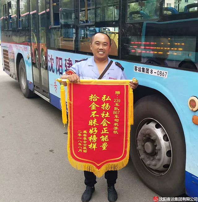 8月23日上午,乘客李女士帶著女兒將一面錦旗送到康利公司239車隊(duì),并要當(dāng)面感謝好心駕駛員蘇凱。